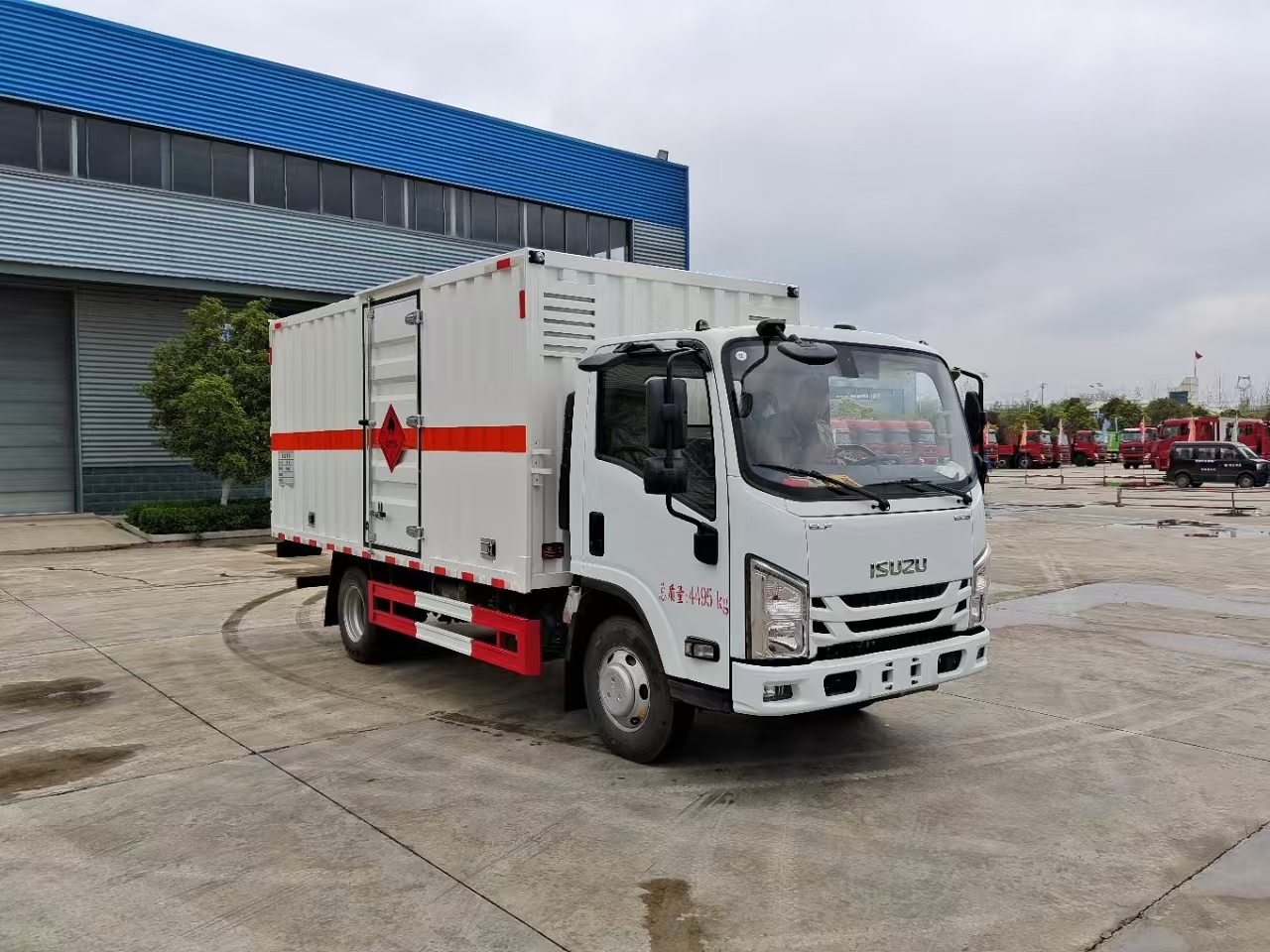 | 貨箱配置 | 廂體為雙層金屬骨架結(jié)構(gòu),外板采用冷軋鋼板,中間填充阻燃泡沫,內(nèi)飾為鋁板。底板為平板上鋪防靜電膠皮。廂內(nèi)兩側(cè)加裝固定貨物臥環(huán),門框帶防盜報警器,頂部帶煙霧報警器,廂體右側(cè)選裝側(cè)門,隨車配2個滅火器,危險標(biāo)志牌,防火帽,危險品三角頂燈。(選裝瓦楞板貨箱) (尾部可選裝液壓升降尾板) | ||