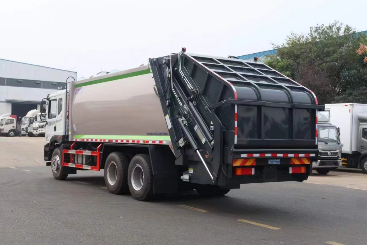 | 上裝配置 | 新款弧形箱體,箱體容積加大約22立方,箱體為優(yōu)質(zhì)高強(qiáng)度Q345錳鋼制作,底箱及填充器采用加厚鋼板,耐腐蝕使用壽命長(zhǎng),三層油漆噴涂處理/電泳工藝。裝載循環(huán)以及垃圾排出時(shí)間快,上裝部分具備雙向壓縮和蠕動(dòng)壓縮功能帶。新款結(jié)構(gòu)加大填充器,手電一體操作模式,帶駕駛室操作,帶駕駛室一鍵卸料功能,尾部裝置可以選裝垃圾翻轉(zhuǎn)斗,掛桶翻轉(zhuǎn)板或者大落地斗。PLC/CAN總線控制方式,光電開(kāi)關(guān)加延時(shí)雙系統(tǒng)控制,降低故障率,方便維修。帶夜間照明裝置,帶污水箱,標(biāo)配選用:定制油缸(質(zhì)保兩年),中梅多路閥,液壓油泵(雙泵雙閥),帶液壓散熱器,嘉善取力器。 | ||