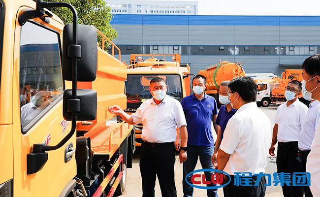 庚即,代表團(tuán)一行饒有興趣的參觀了程力高端抑塵車專業(yè)廠的疫情消毒霧炮車,程國強(qiáng)書記與執(zhí)行總經(jīng)理朱武分別向代表團(tuán)介紹了程力自己研發(fā)的無副發(fā)動機(jī)的智能化多功能消毒防疫車產(chǎn)品性能和市場銷售情況。