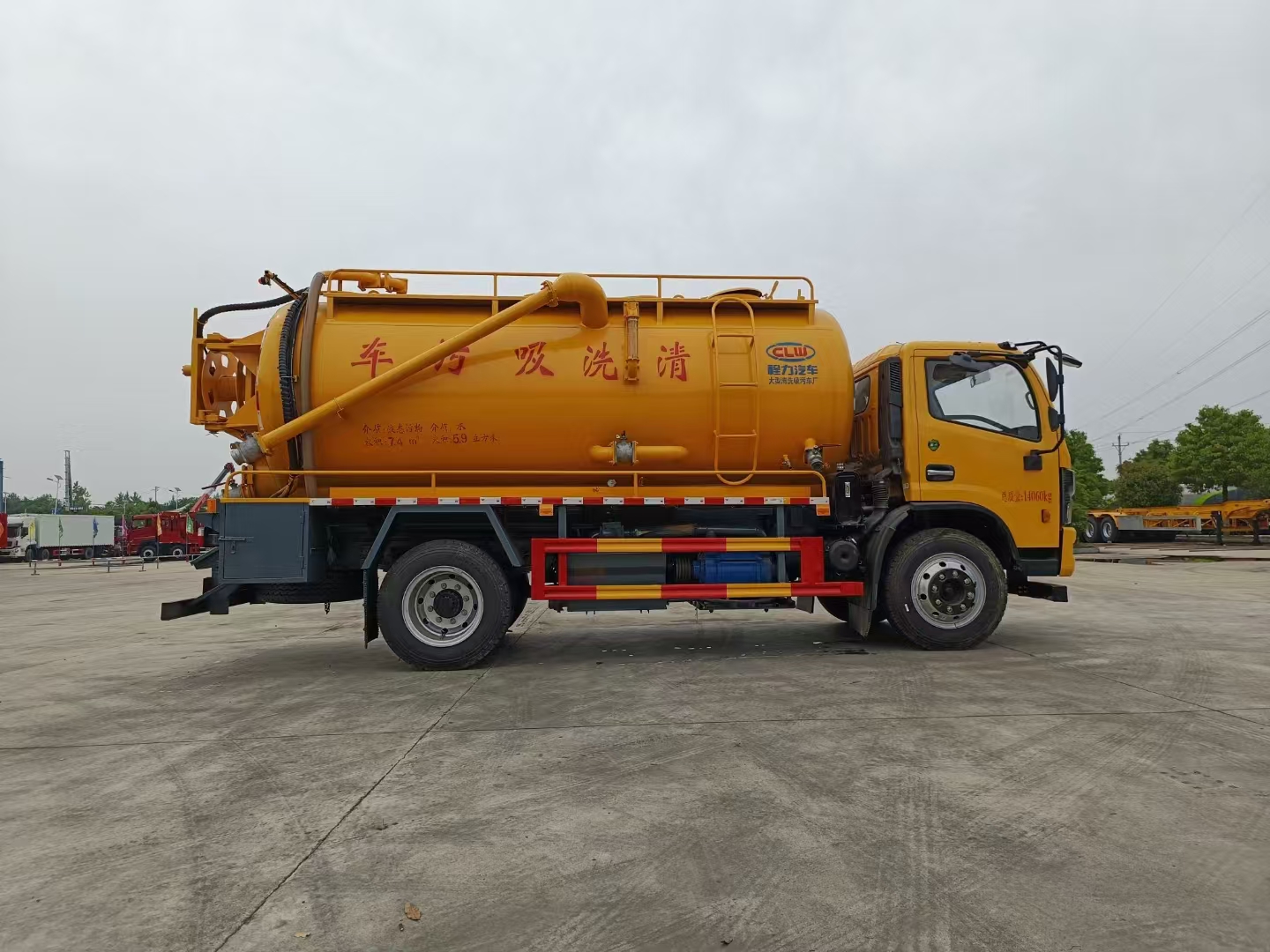 | 污水罐 | SK-12水循環(huán)泵,水循環(huán)泵水箱為碳鋼材質(zhì),頂部防溢閥位置盡量最低,尾部開大蓋,100球閥直通罐頂吸污,吸污壓力表裝在水箱附近,罐體尾部?jī)蓚?cè)工具箱,手動(dòng)油門,1根8米吸污管帶陰陽端接口,10個(gè)組合槍頭,其他廠內(nèi)標(biāo)配。 | ||