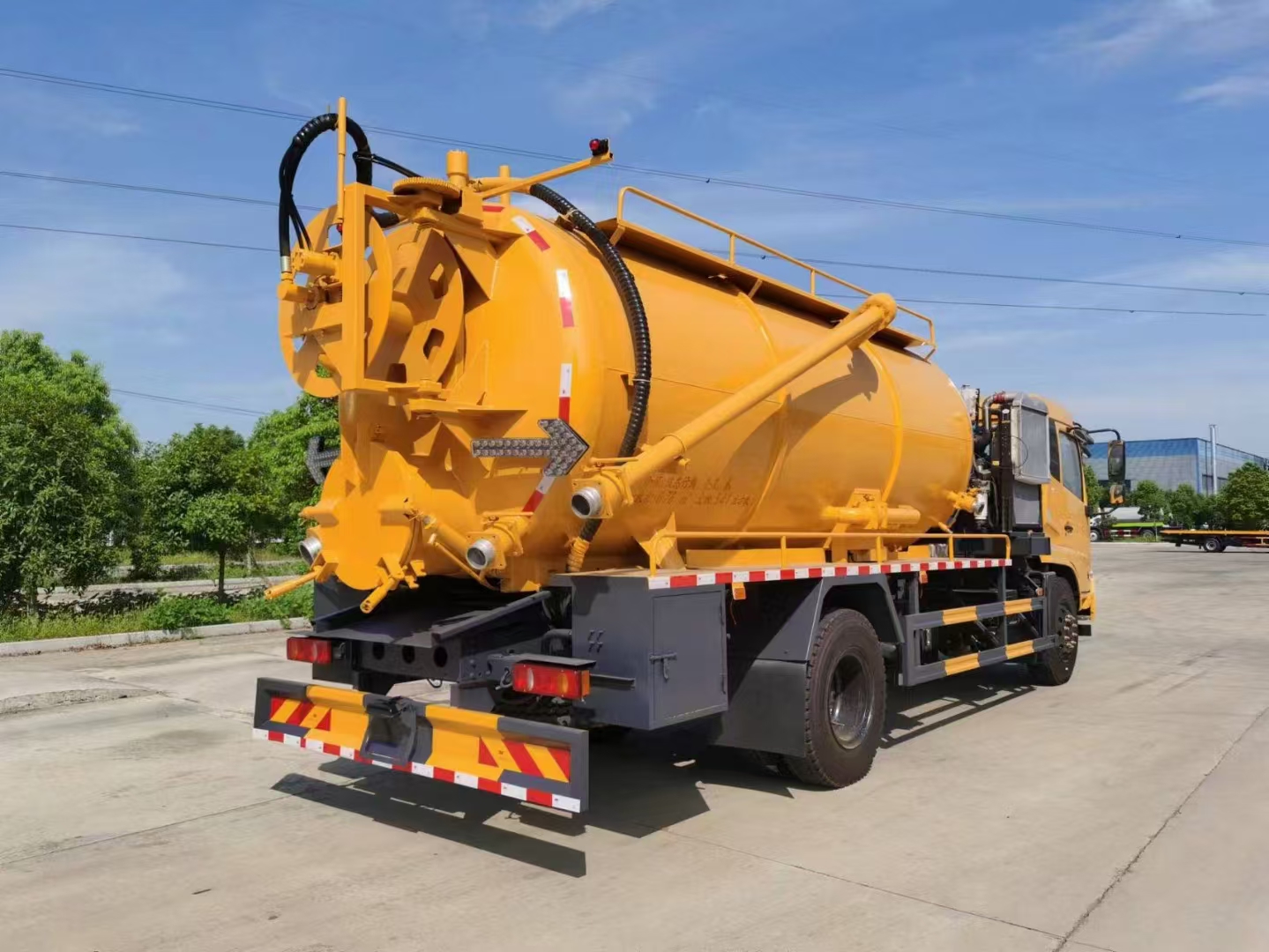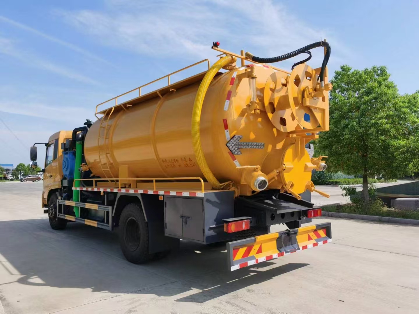| 上裝配置 | 罐體容積15立方左右,清水罐5立方,其余為污水,罐體8mm厚,封頭8mm厚,舉升頂為自卸中置頂,副駕駛一側(cè)清水罐和污水罐用DN100球閥互通,另罐頂裝一個(gè)互通,副駕駛一側(cè)按照公告圖片安裝爬梯;清水罐:品孚350高壓泵,罐頂水車罐口一個(gè),帶爬梯,高壓管100米22號高壓管,尾部液壓卷盤,左右各裝一個(gè)消防栓進(jìn)水口,清水罐裝兩側(cè)各一個(gè)小球閥,罐底裝一個(gè)DN65排水閥, 吸污罐:一個(gè)散水罐口,罐體內(nèi)部鋪1.2米不銹鋼板,罐內(nèi)爬梯,罐體內(nèi)部防浪板加固,水循環(huán)泵水箱為碳鋼材質(zhì).副發(fā)濰柴375馬力配SK-30水循環(huán)泵,副駕側(cè)排150鋁合金球閥,開600小蓋排污口,尾部600小蓋左側(cè)一個(gè)150排污口,右側(cè)一個(gè)100的進(jìn)料口,側(cè)邊一個(gè)100排清水,罐體尾部兩側(cè)工具箱,1根10米吸污管,箭頭燈,手動(dòng)油門… | ||