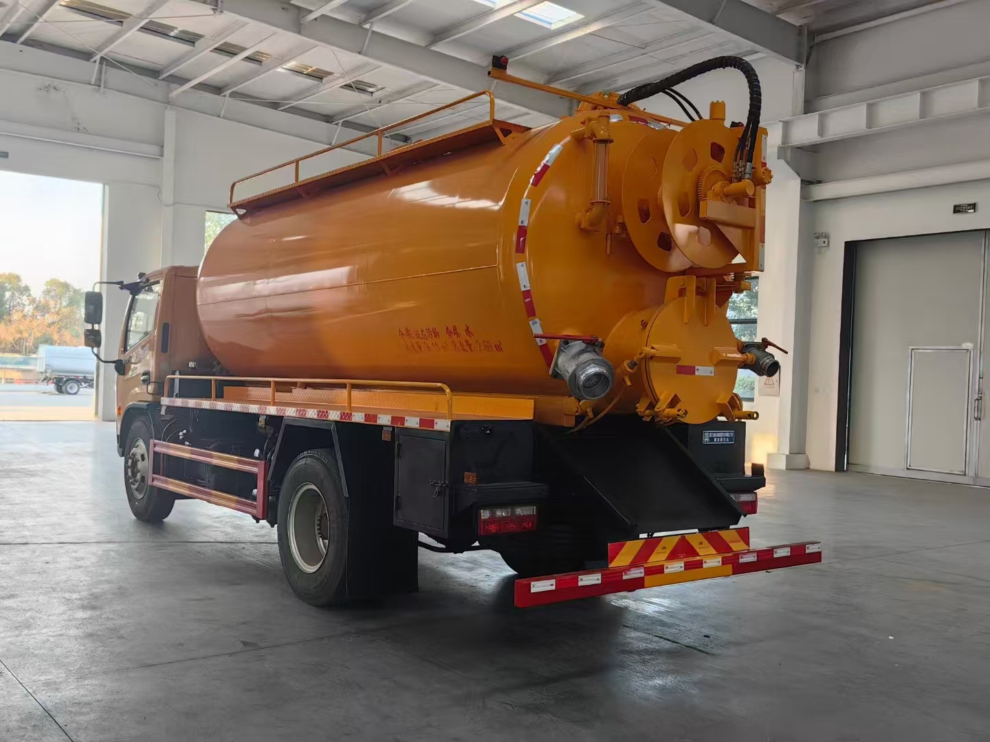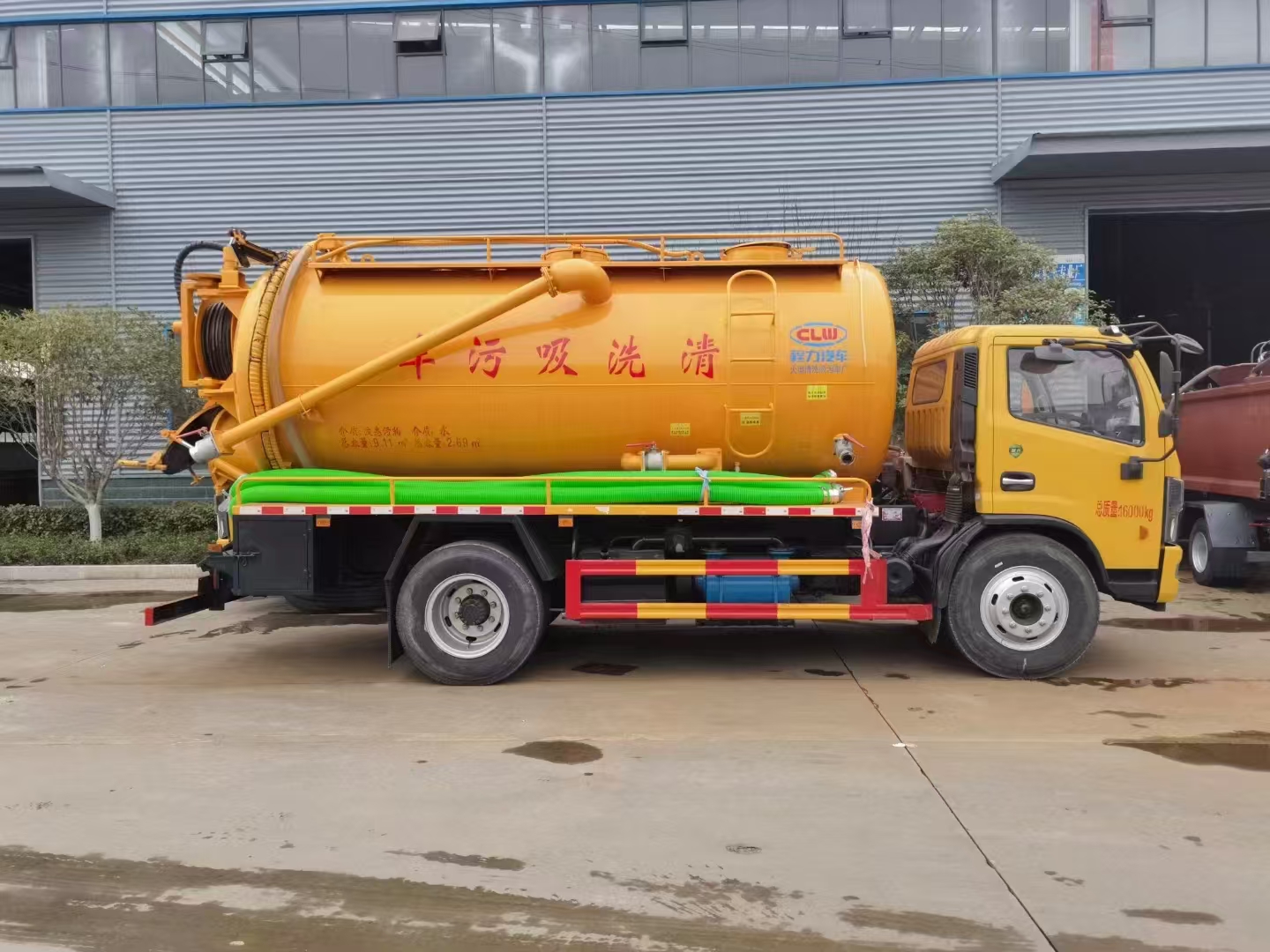 | 上裝配置 | 吸污罐容積約9立方,清水箱約4立方,污水罐6mm制作,清水罐和污水罐安裝互通。清水罐一個量水管,水箱最低點一個DN65球閥,帶消防接頭,品孚255流量高壓泵,帶60米19號高壓管,卷盤液壓旋轉(zhuǎn)180度,液壓收放管. 污水罐:SK-15水循環(huán)泵,水循環(huán)泵水箱為碳鋼材質(zhì),頂部防溢閥位置盡量最低,后蓋600液壓打開,100球閥直通罐頂吸污尾部一個150的排污球閥,吸污壓力表裝在水箱附近,罐體尾部兩側(cè)工具箱,手動油門,1根8米吸污管帶陰陽端接口,一個水雷槍頭,其他廠內(nèi)標配… | ||