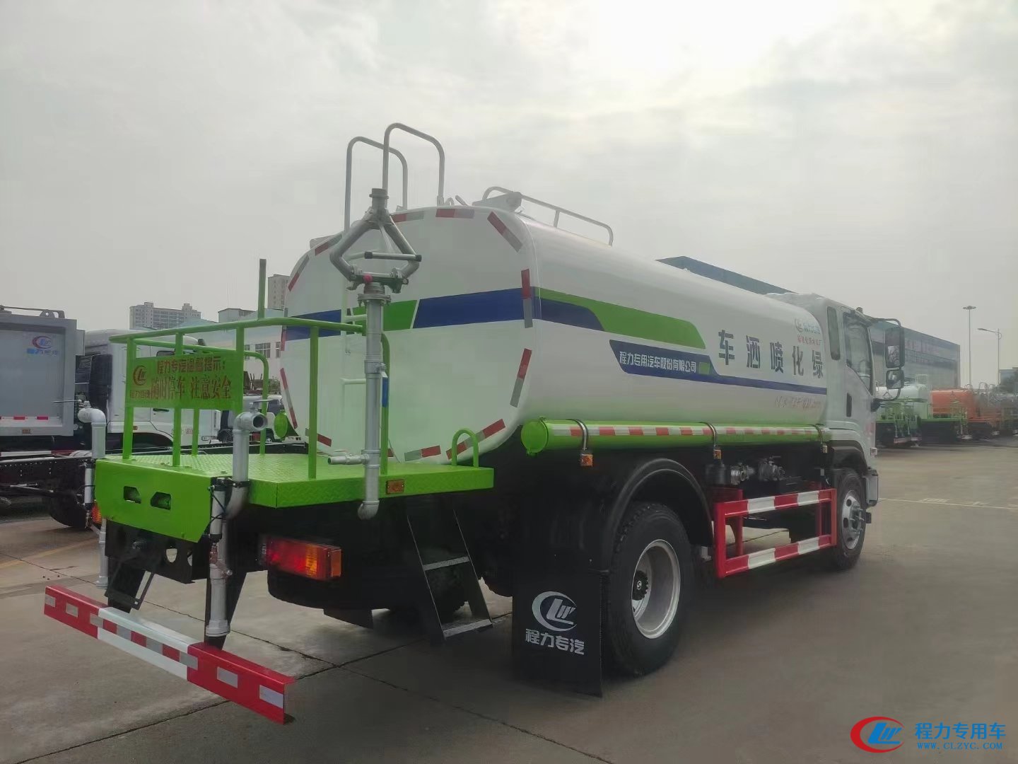 | 上裝配置 | 上裝武鋼優(yōu)質(zhì)碳鋼板,容積12立方,厚度4mm,封頭5mm,前后封頭機(jī)器人自動(dòng)焊,內(nèi)設(shè)隔浪板,帶液位計(jì), 配程力原廠大功率灑水泵,帶駕駛室電控操作,前沖后灑4個(gè)新式不銹鋼切斷閥,前沖 后灑 側(cè)噴 后高炮,后高炮可調(diào)節(jié)柱狀 雨?duì)詈挽F狀,新式?jīng)_孔工作平臺(tái),主管道加粗,副管道全采用優(yōu)質(zhì)鍍鋅管道,帶自吸自排,自流閥,消防接頭,過濾裝置,邊燈帶電,其他標(biāo)配… | ||